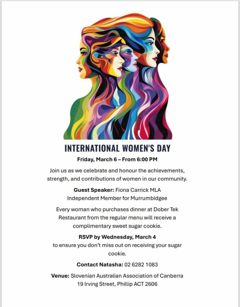 If you’d like to receive detailed updates from the Club straight to your inbox, simply email admin@slovenianclubcanberra.org.au. Stay informed and connected with the Slovenian Australian Association Canberra.