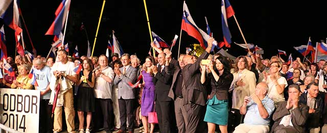 Po čudoviti prireditvi v ljubljanski filharmoniji, ki so jo organizirali ob 25. letnici samostojne Slovenije Izseljensko društvo Slovenija v svetu in glasbena matica Ljubljana s podporo Urada za Slovence v zamejstvu in po svetu, 23.06.2016. Na ulicah Ljubljane s predsednikom SDS Janezom Janšo in soprogo Urško.