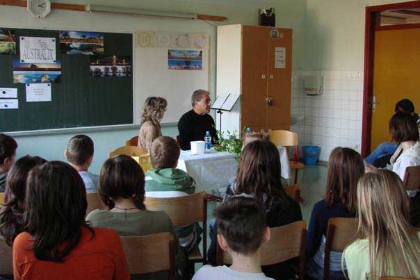 it was Thursday, 28th February, the day we were all looking for – teachers of English and the pupils involved in the Slovenian – Australian project. We were preparing carefully for the afternoon which we called The Slovenian – Australian afternoon. Our guest, Mr Rizmal, kindly accepted our invitation and joined us at 3 p.m. in our English classroom. First he was welcomed and introduced to the group by Mrs Pilih, the teacher of English and soon the conversation started. There were a lot of things the pupils wanted to know and they prepared a lot of questions for him. They wanted to know why he and his family imigrated to Australia, how he likes living there, what the differences between the two countires are, about typical food in Australia, what teenagers are like and how they spend their free time, about cities in Australia and animals that live there. Mr Rizmal created a pleasant attitude and the children couldn't stop asking questions. They learnt a few new words, typical for the country we were talking about (e.g. the outback, marsupials, Aboriginal, …).