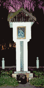Žal so Mejačeve štiri slike na spomeniku (Beg v Egipt- značilno za nas begunce, Trpini - žrtve vojne, Sv.Kristof - popotniki in brezjanska Marija Pomagaj) s časom na soncu tako zbledele, da smo jih morali nadomestiti samo z Marijo Pomagaj. Tudi sedanjo sliko bo treba kmalu zamenjati, saj je vedno izpostavljena zgočemu soncu.