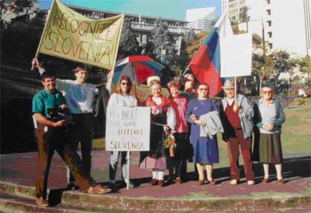 Na protestu smo delili letake, katere smo dobili iz Melbourna - dar ASK- vsem mimoidočim Avstralcem in vsakomu, ki se je količkaj zanimal za nas. Zbirali smo tudi podpise podpore za samostojno Slovenijo, katero listo smo potem poslali naprej poslancem vlade.