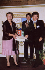 | Miro Ogrizek receiving an Appreciation Award by the president of SAM, Milena Brgoc | ![]() |