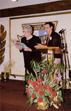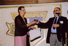 | Dragica Gomizel receiving an Appreciation Award by the president of SAM, Milena Brgoc |