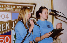 Simon, Michelle, Leah and Melissa Fistric singing the Slovenian National Anthem; and narrators of the program Golden Harvest Anica Markic and Andrew Fistric