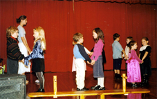 Otroci se učijo pesmi, recitacije, igric ali skic, plešejo in so stari