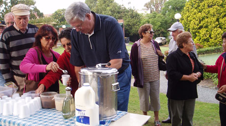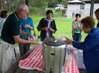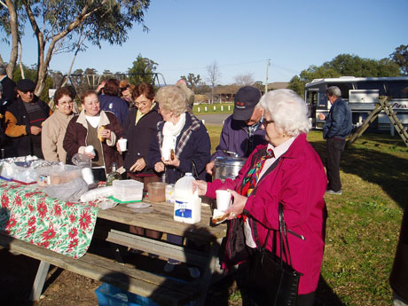 | Poleg Božiča v Juliju v našem klubu smo slavili če eno tako poletno božično praznovanje, na avtobusnem izletu v Penrith dolino. Neobičajno lep in sončen dan je bil v četrtek, koncem julija in najprej smo obiskali vinograd »Wickery«, kjer smo na ploščadi med zelenimi grički prvo imeli dopoldanski zajtrk ali »morning tea«, kakor pravijo tukaj, nakar smo poskusili domača vina v vinarni.