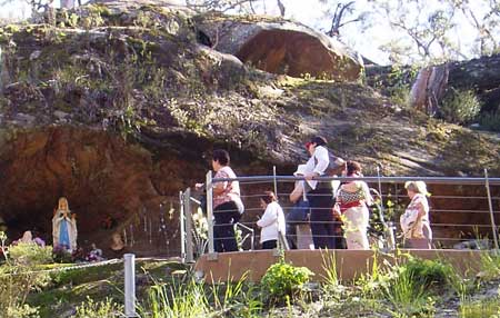 Po jutranjem okrepčilu smo si ogledali prelepo cerkev samostana, kapelice in na koncu cerkev na prostem z votlino, kjer biva Lurška Mati Božja, nakar smo se odpravili dalje k Fitzroy Falls, kjer smo imeli piknik kosilo na prostem. Leseni hodniki med drevjem, ovijalke, praproti, visoko cvetoče grmičevje in slapovi dajejo vtis, kot bi bili v slavnem “rainforest”, obdani z naravo in mirom.