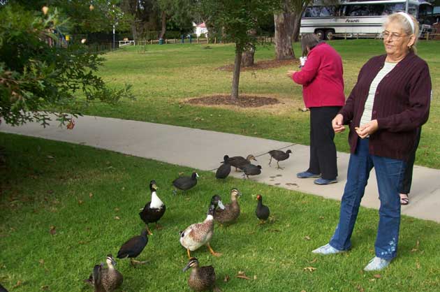 Po okusnem kosilo v krajevnem klubu smo šli hranit pelikane v Entrance , kjer se vsako popoldne ob 3.30 PM zberejo stotine the velikih morskih ptic, v veliko veselje številnih turistov, ki si pridejo ogledat to zanimivo atrakcijo.