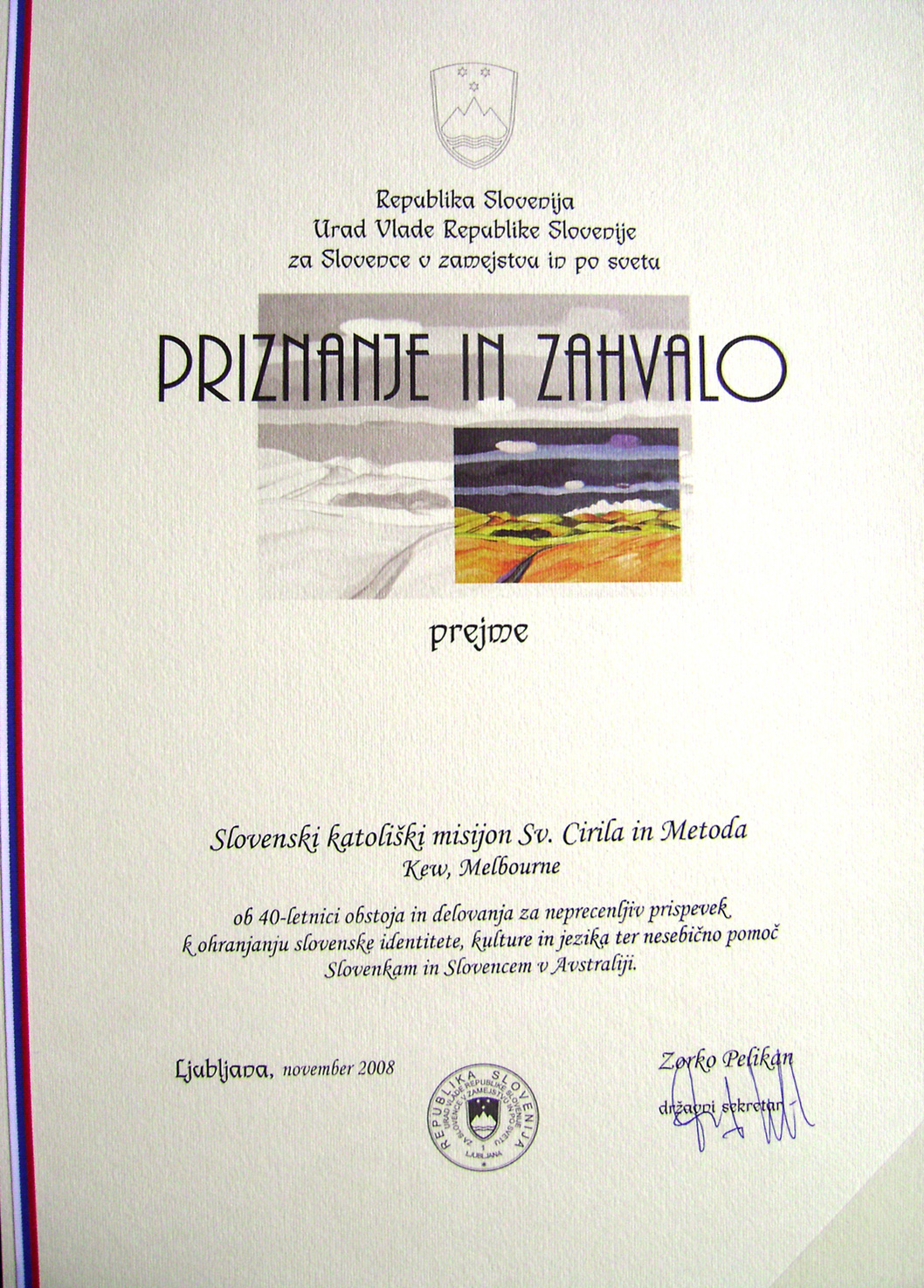 sv. Cirila in Metoda v Melbournu je prejel ob visoki obletnici tudi