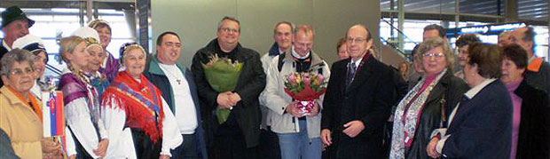 Sprejem mariborskega pomožnega škofa dr Petra Štumpfa, ki je odgovoren za Slovence po svetu in črenšovskega župnika Ivana Kranjca na sydneyskem letališču