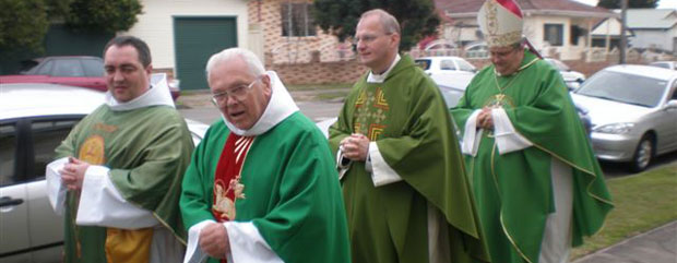 Pater Valerijan, dr. Drago Ocvirk, pater Darko Žnidaršič pri obredu v Merrylandsu